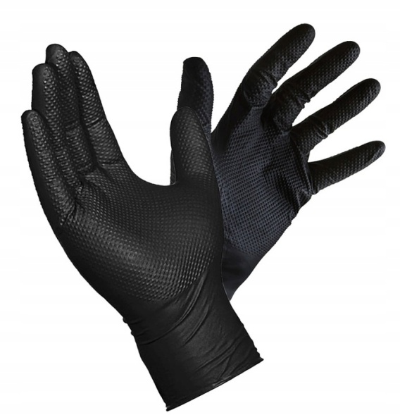 • Rękawiczki nitrylowe diamentowa tekstura czarne M 50 szt